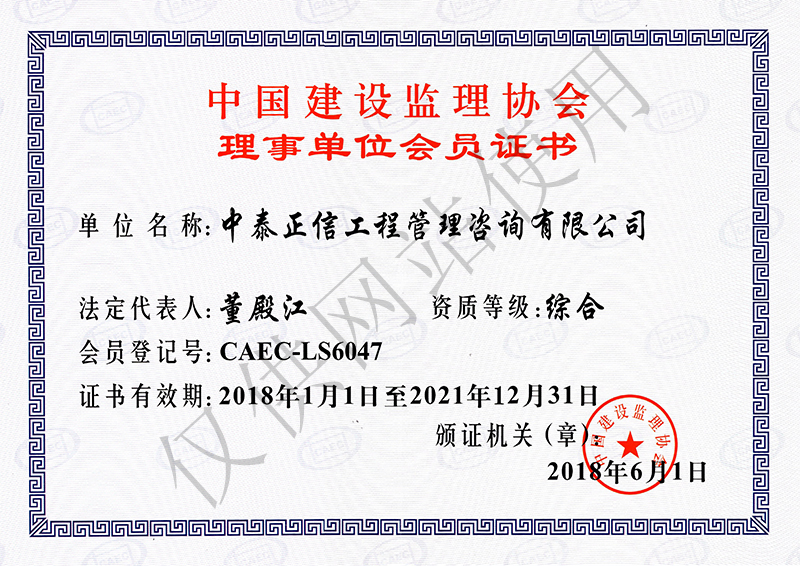 中国建设监理协会理事单位会员证书