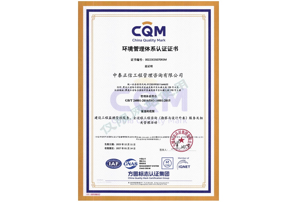环境管理体系认证证书
