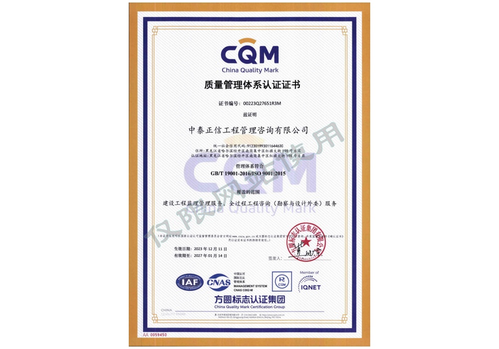 质量管理体系认证证书
